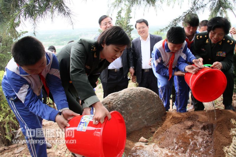 孙锦云一行还来到善山森林公园,为以前来滕航天员栽植的松树培土、浇水。刘旺、刘洋亲手栽下2棵松树,并希望“特别能吃苦,特别能战斗,特别能攻关,特别能奉献”的载人航天精神在善国大地生根发芽、开花结果。 (王文利 拍摄)