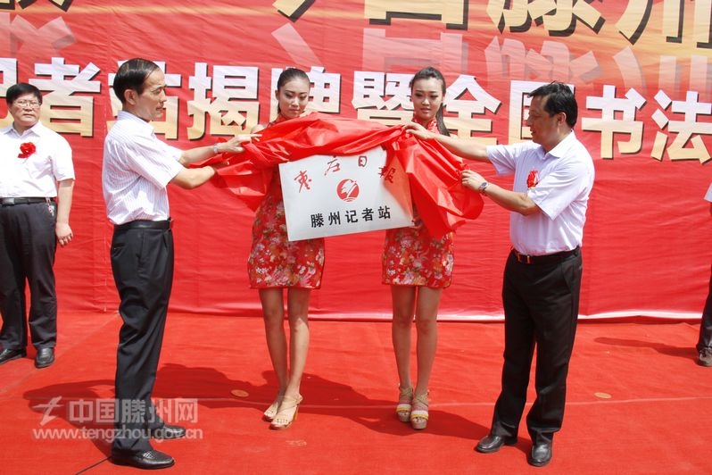 仪式上,张宝民和董沂峰为枣庄日报滕州记者站揭牌。枣庄市文广新局副局长韩伟宣读了山东省新闻出版局《关于同意设立枣庄日报滕州记者站的批复》。枣庄市委宣传部常务副部长刘成典向枣庄日报滕州记者站颁发了《报刊记者站许可证》。