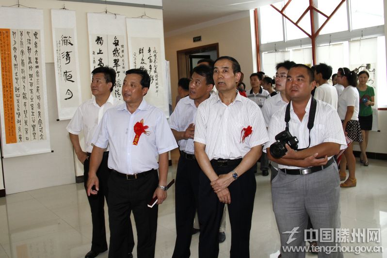 为庆祝枣庄日报滕州记者站成立和《枣庄日报·今日滕州》创刊,由枣庄日报社、枣庄市文联、枣庄市美术家协会、枣庄市书法家协会、滕州市文联联合举办的全国书画名家邀请展也同时开展。出席仪式的领导为全国书画名家邀请展剪彩并观看了展览现场。 (黄河 拍摄)