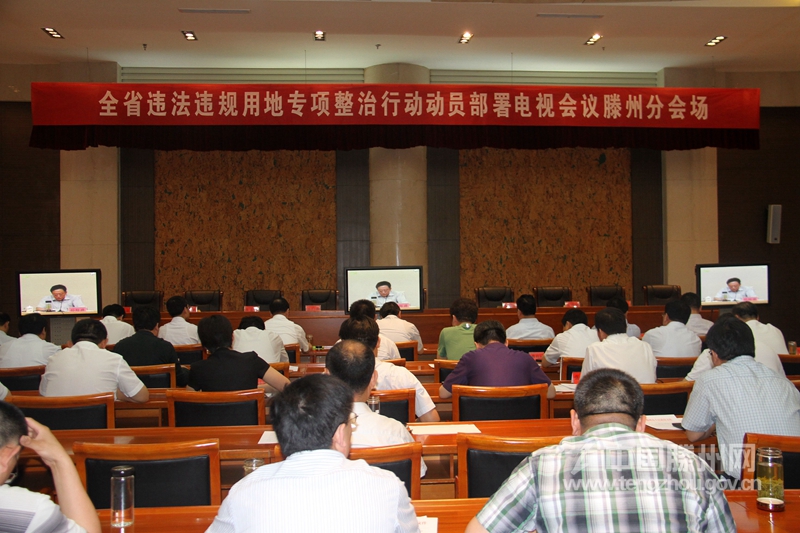 5月26日,全省违法违规用地专项整治行动动员部署电视会议召开,通报违法占地案件查处情况,向违法占地案件发出挂牌督办通知书,责成有关部门、单位在规定的时限内严肃查处、督促整改,部署违法违规用地专项整治行动任务。市领导远义彬、程春常以及有关部门、镇街的负责人在滕州分会场收听收看了会议实况。