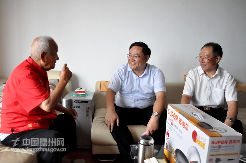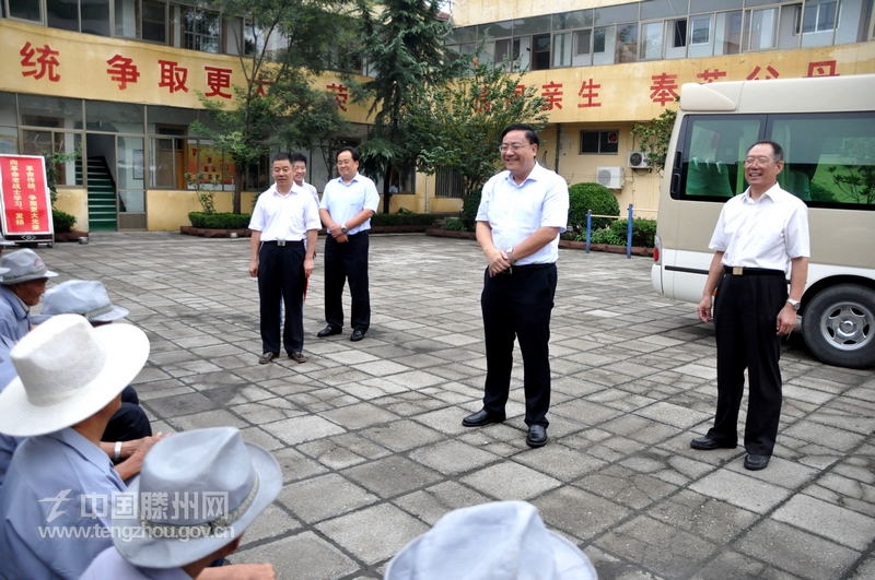 在市光荣院,老荣军们鼓掌欢迎远义彬一行的到来。远义彬详细询问老荣军们的生活和身体情况,并向老人们介绍了我市经济社会发展取得的新成就。远义彬说,滕州取得的成绩与老荣军们是分不开的,我们一定把家乡建设好,尽快走进百强县第一方阵。