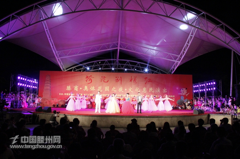 一年一度的红荷节已成为我市的品牌节会和群众期盼的传统节日,本届红荷节突出“节俭、务实、惠民”主题,通过书画艺术展、群众性文化惠民展演等主题活动,将红荷节打造成为具有滕州特色的文化旅游盛宴和普通百姓的欢乐舞台。没有炫目的数字化舞台,没有震撼的视觉特效,不请明星、不讲排场,看似本届红荷节演出没有了以往的“分量”,而舞台上的精彩表演着实让观众“惊艳”一把。演员中既有青春洋溢的大学生,又有年过花甲的老人,既有全市青歌赛的获奖选手,又有来自文艺战线上的优秀代表,这一群地地道道的滕州人,用他们的活力与热情唱出了实实在在的滕州情,点缀着百万滕州市民的幸福梦。