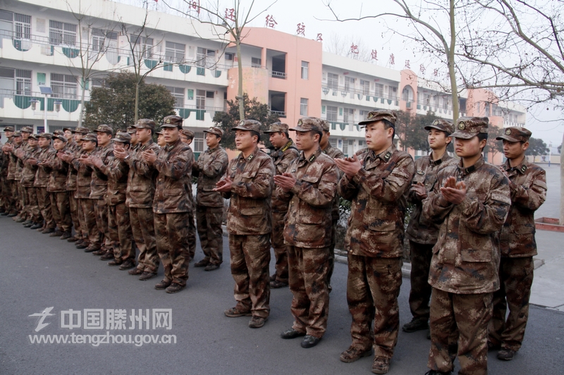在山东陆军预备役炮兵师滕州拉练驻地,董沂峰代表市委、市政府和全市人民对预备役炮兵师的到来表示热烈欢迎。他高度评价了预备役炮兵师多年来在支持滕州地方经济发展、维护社会安定和谐等方面做出的贡献,并祝愿预备役炮兵师在这次拉练中取得优异成绩。他说,滕州市是革命老区,历来就有关心支持国防和军队建设的优良传统。部队在寒冷的冬季组织野营训练,这种顽强拼搏、英勇奋斗精神和作风很值得我们学习。在下步工作中,滕州市委、市政府将一如既往的为各位战友们服务好,全力协助部队官兵搞好后勤服务和保障,以实际行动支持部队和国防建设,确保此次冬训活动取得圆满成功,促进军地双方共同发展。