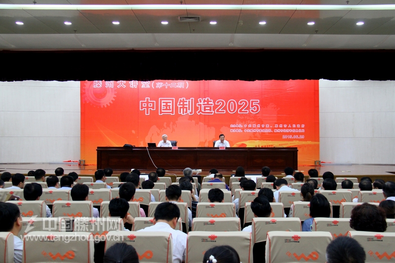 为全面、深入学习领会《中国制造2025》的精神实质,提升我市制造业核心竞争力,6月29日,由滕州市委、市政府主办,滕州市委组织部、市经信局承办的第十二期滕州大讲堂《中国制造2025及智能制造》报告会在市政务中心二楼报告厅举行,邀请中国工程院特聘专家、国家机械科学研究总院原副院长屈贤明作《中国制造2025》主题演讲。中国机床总公司特聘专家、北京机电研究院原副院长李中廉,市领导杨位明、李健、邵士官、侯宗伟、刘光、张熙滨等出席报告会。