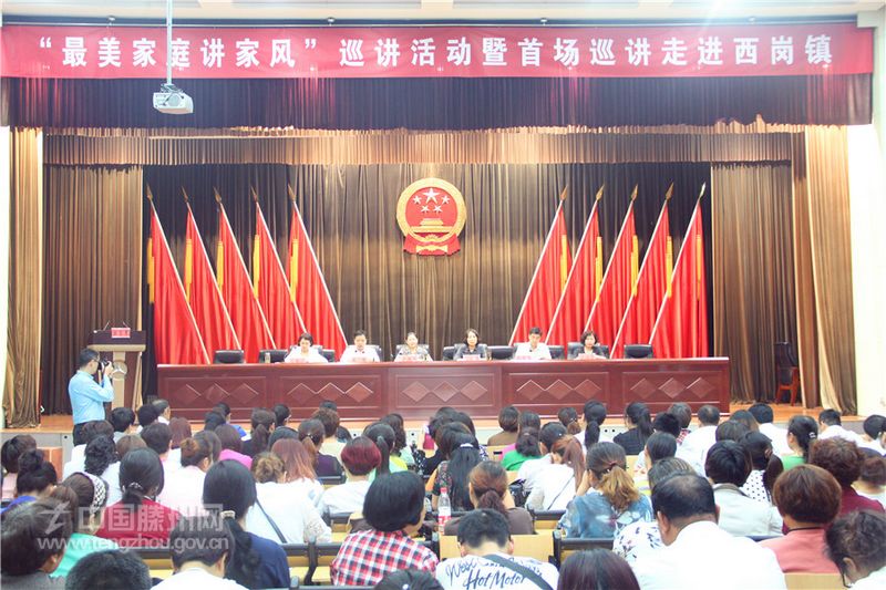 5月31日,我市首场“最美家庭讲家风”巡讲在西岗镇举办,枣庄市妇联副主席于锦芳、市妇联主席朱文辉、西岗镇党委书记秦魁、西岗镇党委副书记赵联喜及西岗镇全体机关干部和教师代表共计300余人参加会议。