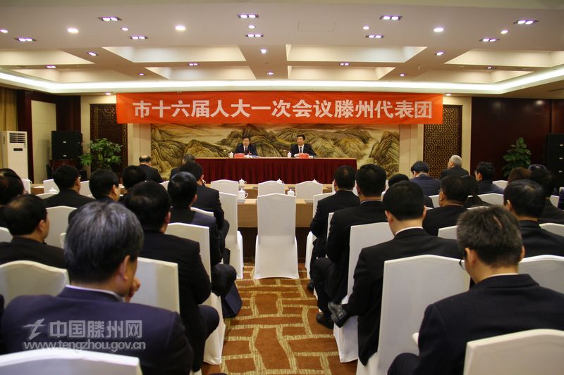 2月18日,枣庄市十六届人大一次会议滕州代表团全体会议举行。市委副书记、市长刘文强,市人大常委会主任李健等出席会议。