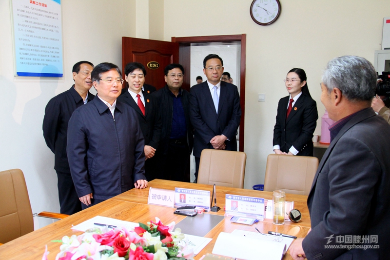 4月14日,省人大常委会副主任张新起带领调研组一行来滕,调研我市人民法院执行工作情况。枣庄市人大常委会副主任刘振学、于良,滕州市委书记邵士官,市委副书记、市长刘文强,市人大常委会主任李健等陪同调研。