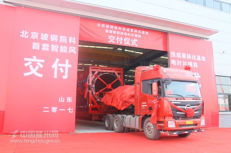 刘颖在讲话中指出,近年来,中材科技股份有限公司从膜材公司到中材锂膜再到北玻院科技成果转化基地项目,相继在滕州落地投产。在此过程中,滕州市委、市政府高度关注,给予了全程保姆式服务,为企业创造了优越的发展环境。北玻创业团队克服困难,奋力拼搏,百日即实现产品交付,再次续写了产业发展的中材科技速度。希望以首套智能风电叶片模具的成功交付为新起点,进一步加强与滕州的交流合作,努力实现双方更大发展。最后,刘颖宣布首套智能风电叶片模具交付起运。