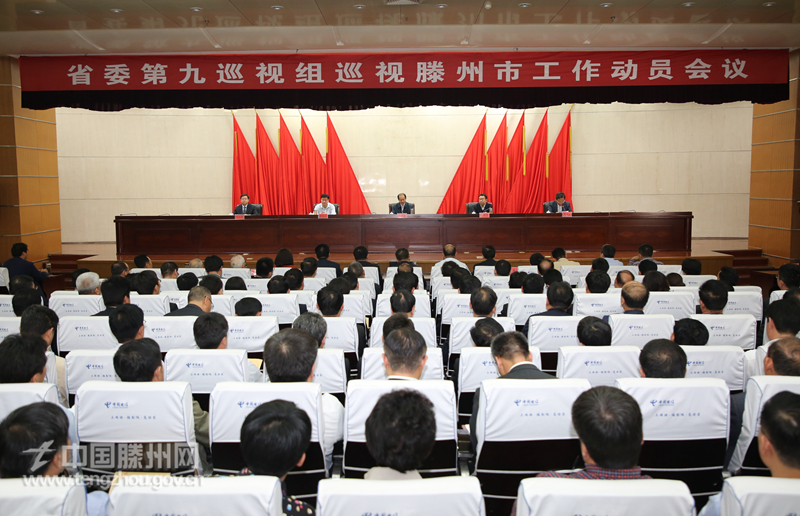 根据省委巡视工作统一部署,2018年4月26日下午,省委第九巡视组巡视滕州市工作动员会召开。会前,省委第九巡视组组长刘志青主持召开与滕州市委书记邵士官,市委副书记、市长刘文强的见面沟通会,传达了省委书记刘家义在听取十一届省委第二轮巡视工作情况汇报后的讲话精神。会上,刘志青就即将开展的巡视工作作了动员讲话,枣庄市委副书记梁宪廷就配合做好巡视工作提出具体要求。邵士官主持会议并作表态讲话。