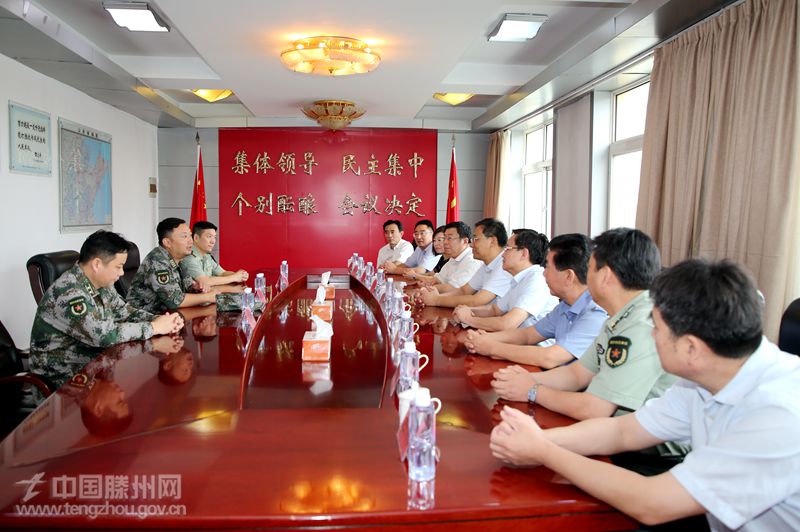 7月30日,邵士官、刘文强、李健、宗大全、刘光、韩昌军一行到枣庄军分区走访慰问,受到了军分区司令员卢泓的热烈欢迎。卢泓对我市经济社会发展取得的成绩给予高度评价,对我市长期以来关心支持国防和军队建设的做法表示肯定和感谢,并表示将继续发扬拥政爱民的优良传统,全力支持滕州高质量发展。邵士官指出,滕州经济社会各项事业的发展,离不开枣庄军分区一直以来的关心支持。下一步,滕州将全力推进双拥共建,为地方武装工作提供各种优质服务和支持。