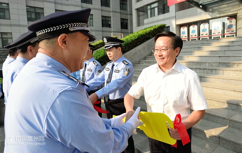 市委书记刘文强在讲话中充分肯定了全市公安工作和队伍建设取得的成绩,对做好今后一个时期的公安工作提出了明确希望和要求。他强调,要服从领导听指挥。要牢记“对党忠诚、服务人民、执法公正、纪律严明”的总要求,进一步增强“四个意识”、坚定“四个自信”、做到“两个维护”;要结合开展“不忘初心、牢记使命”主题教育,自觉把对党忠诚的政治信仰转化为实际行动,在安保维稳实战中接受党和人民的检验。要担当作为建新功。要深入推进“平安滕州”建设和扫黑除恶专项斗争,坚持以最高标准、最实举措、最严要求,抓好公安各项工作,全力营造安全稳定的社会环境。