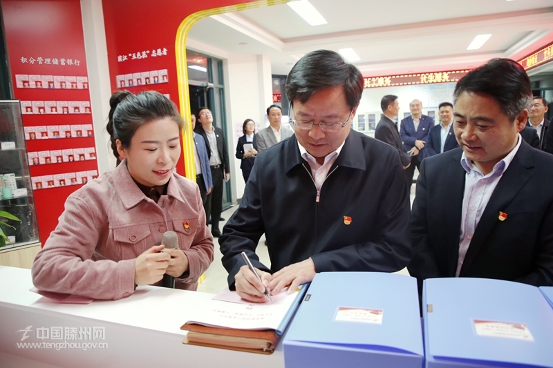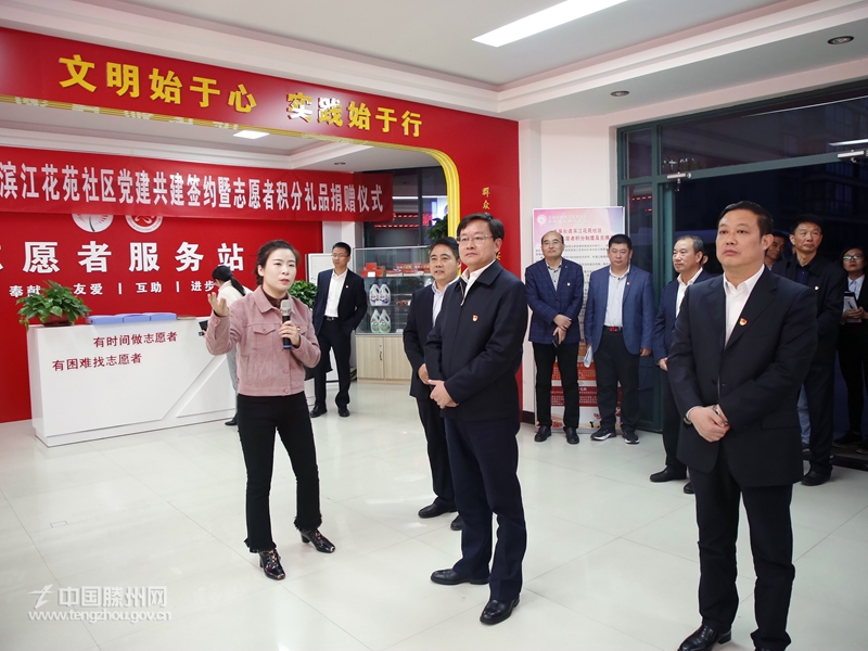 刘文强一行来到滨江花苑社区,听取了滨江花苑社区有关情况汇报,参观了便民服务大厅、党员活动室、志愿服务站等场所,详细了解了“不忘初心、牢记使命”主题教育开展、基层党组织建设、城市社区治理、党员教育管理、志愿者服务、垃圾分类、便民服务等情况,并以普通党员身份认领了志愿服务岗,签订了志愿服务积分卡。