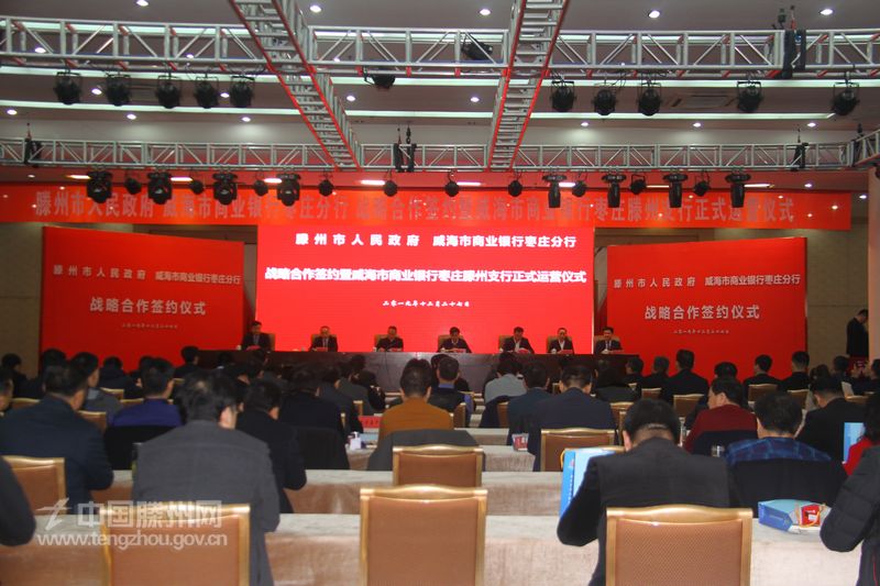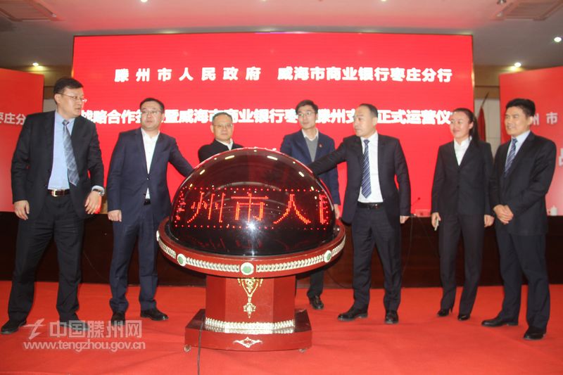 12月27日,滕州市政府与威海商业银行战略合作签约暨威海市商业银行滕州支行正式运营仪式举行。市委副书记、代市长马宏伟,副市长樊猛,以及枣庄市地方金融监管局、威海市商业银行枣庄分行有关负责人出席仪式并按动启动球。