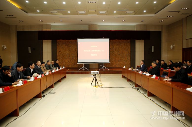 1月16日,传化物流集团执行总裁徐炎、德意控股集团有限公司董事长高德康一行来滕,就加快推进合作事宜进行考察洽谈。市委副书记、市长马宏伟,副市长樊猛参加会见。