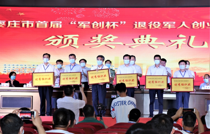 据悉,本次比赛由枣庄市退役军人事务局、市委宣传部、市财政局、市人社局、市国资委、市总工会、共青团枣庄市委员会、市妇联、市科协等部门举办,目的是大力营造退役军人创业创新的浓厚氛围,更好地推动我市退役军人就业创业工作创新发展。各区(市)共推送了41家参赛企业和团队,经过一天的赛事角逐,评审委员会推选出11个优秀项目,滕州市、薛城区、山亭区、市中区、台儿庄以及枣庄科技职业学院获评优秀组织奖。