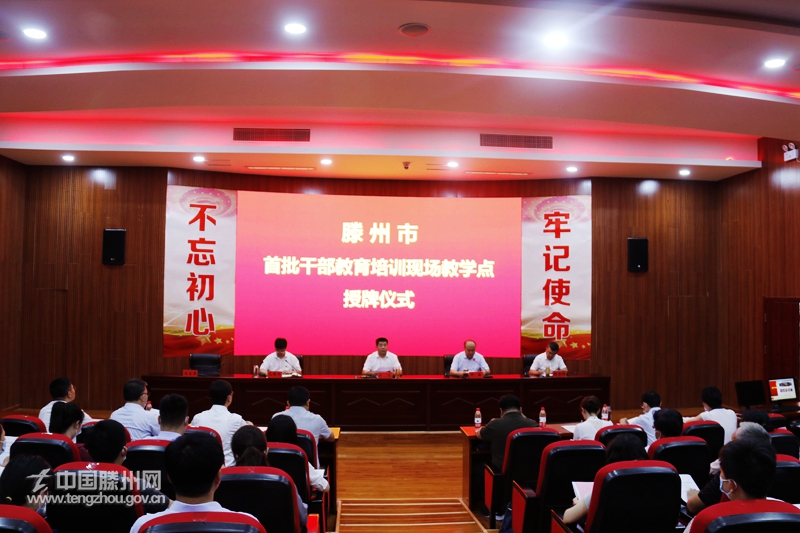 7月3日,滕州市首批8个干部教育培训现场教学点授牌仪式在龙泉街道党员政治生活馆举行。本次活动旨在充分发挥典型示范引领作用,丰富干部教育培训形式,提高培训实效性、精准性。市委常委、组织部部长高鹏出席授牌仪式。