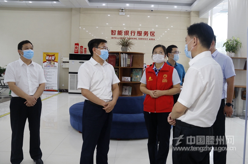 刘文强一行在农商银行营业网点现场调研