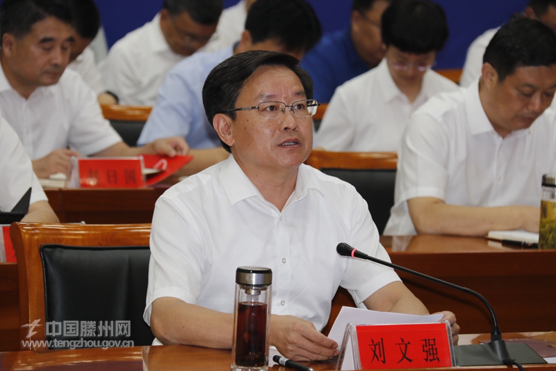 签约仪式上,市委书记刘文强首先代表滕州市委、市政府对项目的成功签约表示热烈祝贺,向一直以来关心和支持滕州发展的社会各界人士表示衷心的感谢。刘文强简要介绍了滕州基本情况,他指出,滕州是“科圣”墨子、“工匠祖师”鲁班的故里,区位优越、交通便利,京台高速、京沪高铁、京杭大运河等多条交通干线穿境而过,生态优美、宜居宜业,是国家卫生城市、国家森林城市、国家园林城市、全国绿化模范市,正在积极争创全国文明城市,产业发达、经济繁荣,是全国精细化工及新材料产业基地、“中国中小机床之都”,是广大客商投资兴业的热土。