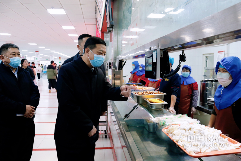 在枣庄科技职业学院,陈永生一行走进餐厅,详细了解了饭菜的价格、种类、质量以及疫情防控措施落实等方面的情况。他要求,要坚持标准化、流程化、制度化的管理机制,采取“学校负总责、托管具体管理”的模式,守牢食品安全每一道防线,努力营造安心、放心、舒心的就餐环境。要落实落细各项常态化疫情防控措施,总结推广疫情防控工作中的好经验好做法,确保师生身体健康和生命安全。