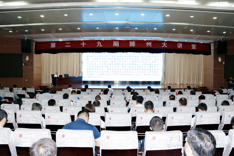 7月20日,第二十九期滕州大讲堂举行,邀请山东旅游职业学院原党委书记、世界旅游组织特聘专家、中华文化标志城专家委员会委员陈国忠作辅导报告。枣庄市委常委、滕州市委书记王广部出席。市委副书记、市长周刚主持。市领导王涛、高欣、刘庆东、李义、康凤霞、颜丙磊,以及市人大常委会、市政府、市政协领导班子成员出席报告会。