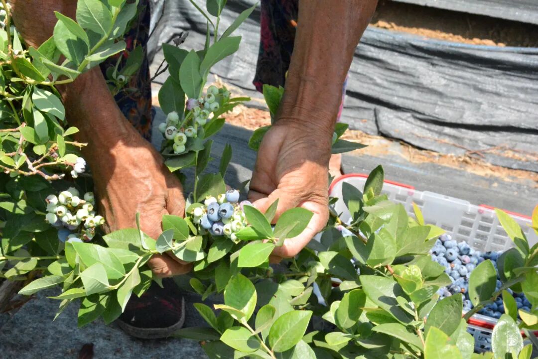 一般每年六月初开始,蓝莓就陆续进入成熟期,每逢周末或者节假日,大量游客都会从各个地方前来体验采摘。在蓝莓采摘季,每天都会雇佣10余名村民过来帮忙采摘、封装蓝莓,直接让村民实现家门口就业,带动更多村民就业增收。