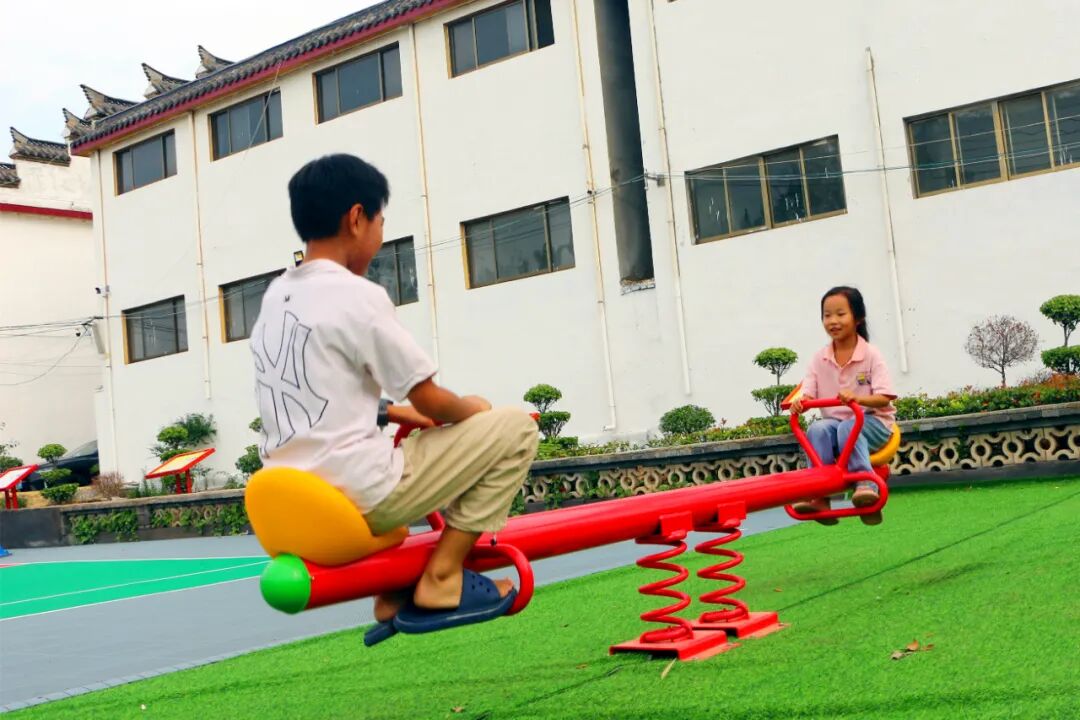 在南沙河镇上徐村新时代文明实践广场,孩子们嬉戏蹦跳,幸福的笑容洋溢在大家的脸上。