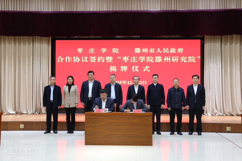 12月22日,枣庄学院与滕州市人民政府合作协议签约暨“枣庄学院滕州研究院”揭牌仪式举行。枣庄学院党委书记高峰,枣庄市委常委、滕州市委书记王广部出席并致辞。枣庄学院党委副书记、校长丛海林,滕州市委副书记、市长刘晓璐,以及我市领导程亮、颜丙磊、刘琳、罗志全参加活动。