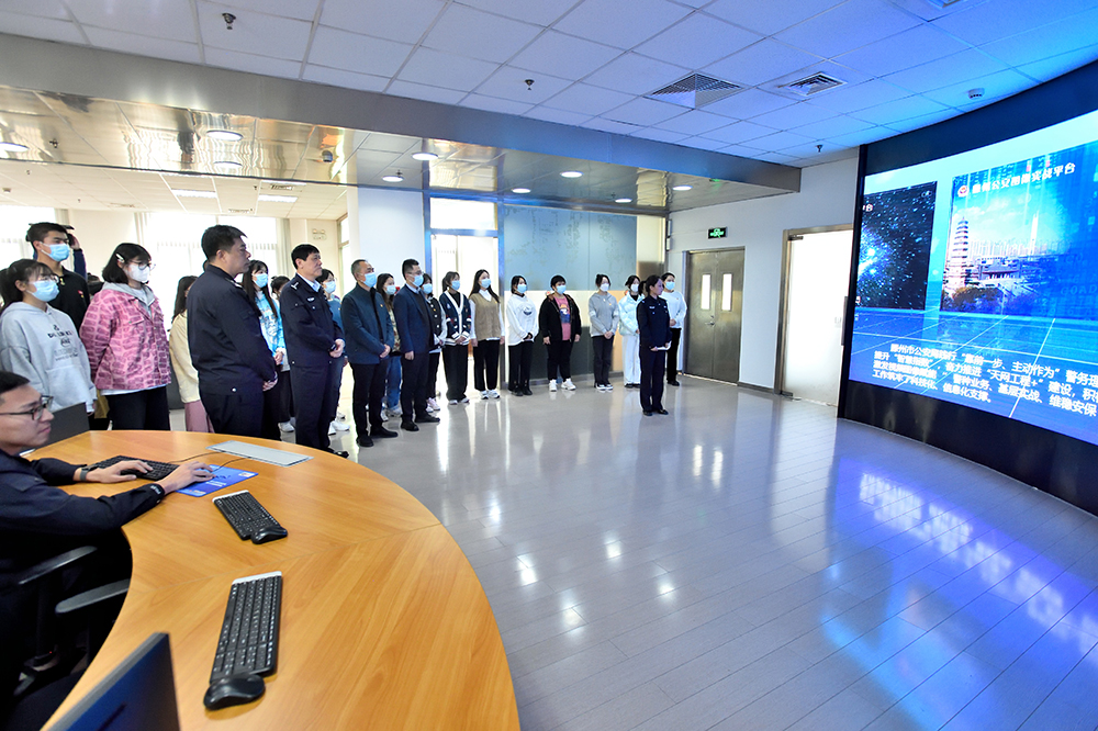 在网警大队、合成作战中心,民警通过视频向师生们介绍了网络谣言、电信诈骗等网络违法犯罪的性质和危害,宣讲了互联网相关法律法规和网络安全防范知识,使广大师生认识到网络安全的重要性和必要性,进一步提高了自我防范意识和自控能力;在110指挥中心,师生们近距离观摩、体验了110接处警服务和信息化应用的工作环境,进一步了解了如何正确拨打110;在图像管理中心,师生们了解了全市“天网”工程建设情况,观看了“天网”监控视频功能和应用的演示。