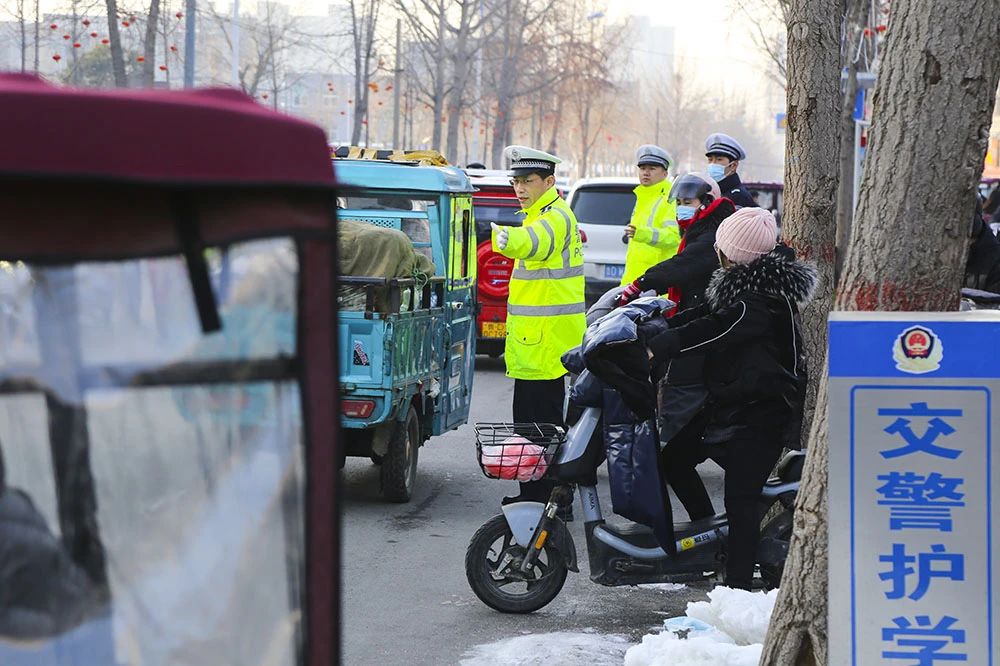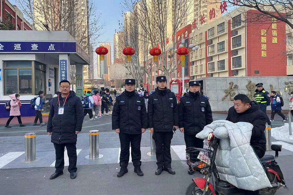 开学第一天,执勤警力提前到岗到位,开启新学期的“护学行动”,加强校园周边治安巡逻、维护校园周边交通秩序,