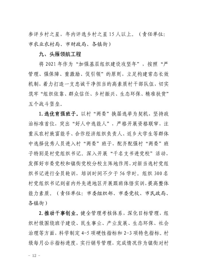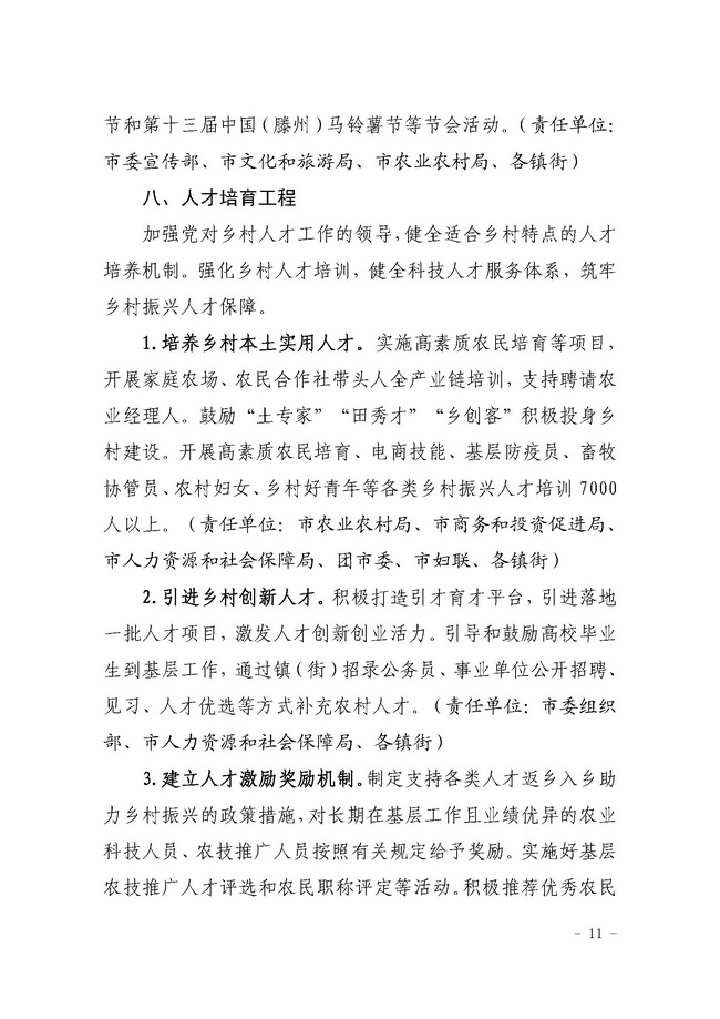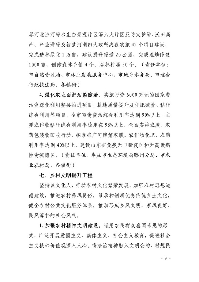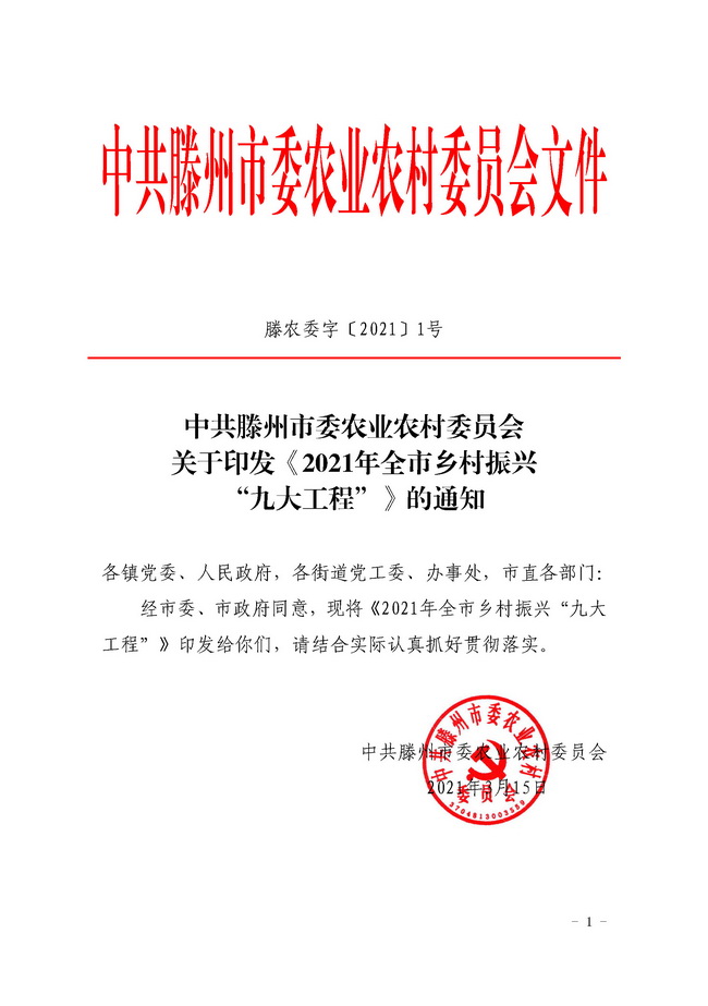滕农委字【2021】1号中共滕州市委农业农村委员会关于印发《2021年全市乡村振兴“九大工程”》的通知