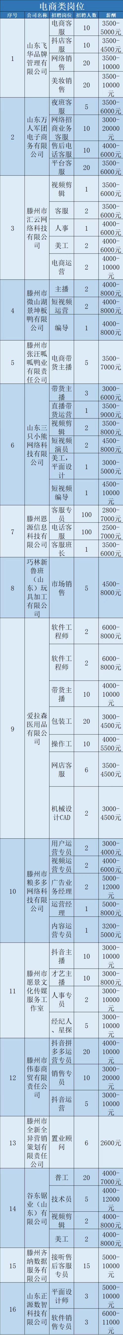 【优化营商环境】滕州春风行动电商专场招聘会岗位预告