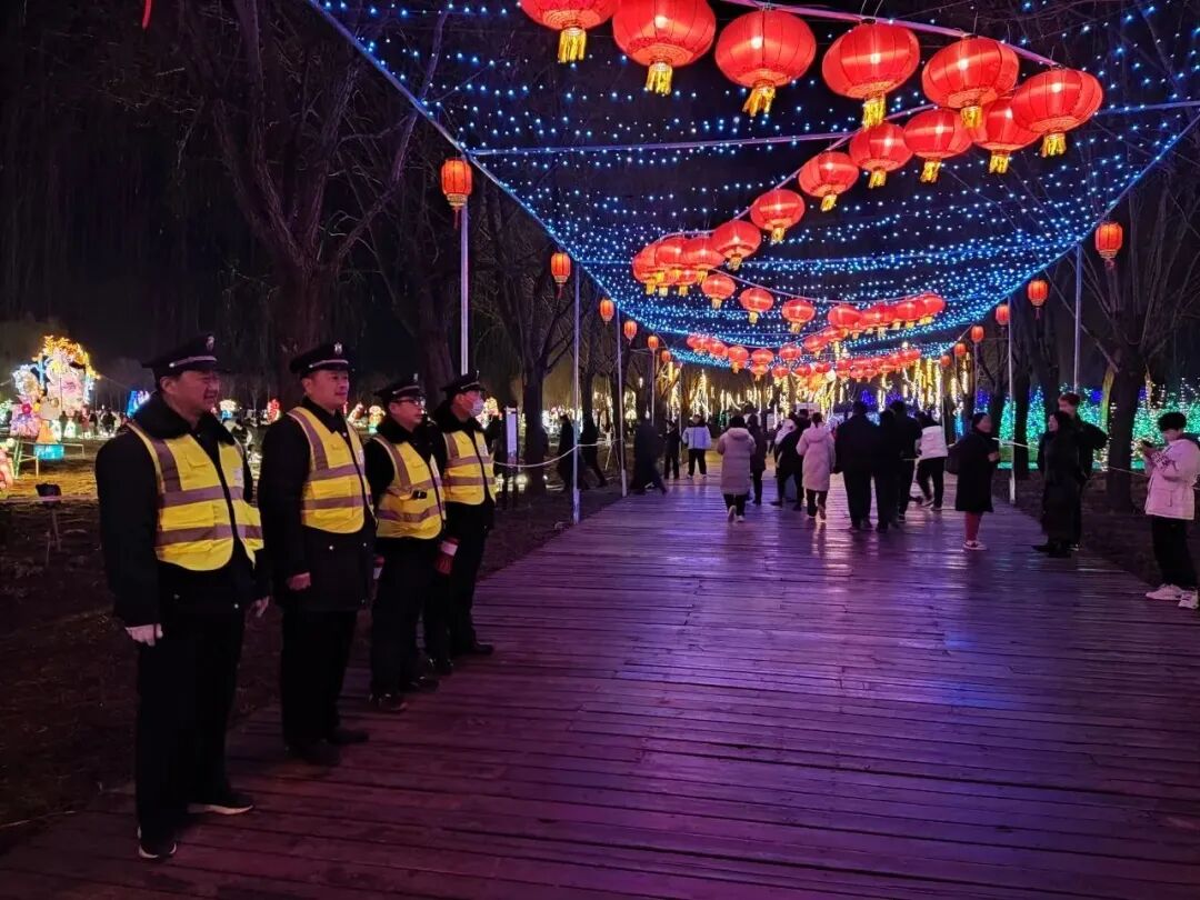 灯展期间,为保障灯展活动能够平稳有序进行,红荷湿地旅游度假区以网格为单位开展安全巡查,协同消防、公安、医疗、蓝天救援等力量,实时开展交通疏导、管控、分流,确保了灯展活动得以安全平稳、秩序井然地进行。