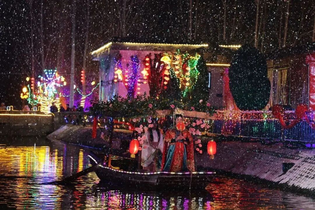 作为红荷湿地首届灯展重要组成部分的旅游度假区“荷乡西迭”和“莲屿下王”两大片区,也在春节期间闪亮登场。这里有风格迥异的鲁南民宿、在建的乡村会客厅,有乡土好味、湿地风物、非遗手造,有半日茶社、莲屿驿站、荷香食苑,还有年货大集、渔家大席菜、微湖故事汇,饱经沧桑的旧物件与VR现代科技“穿越”相见,在围炉煮茶烟火氤氲中,在视觉冲击、味觉满足中,在浓浓人间烟火气中,感受微湖渔家浓浓年味,真正“嗨游”“潮玩”乐翻天,让您“渔”味无穷、留“莲”忘返......