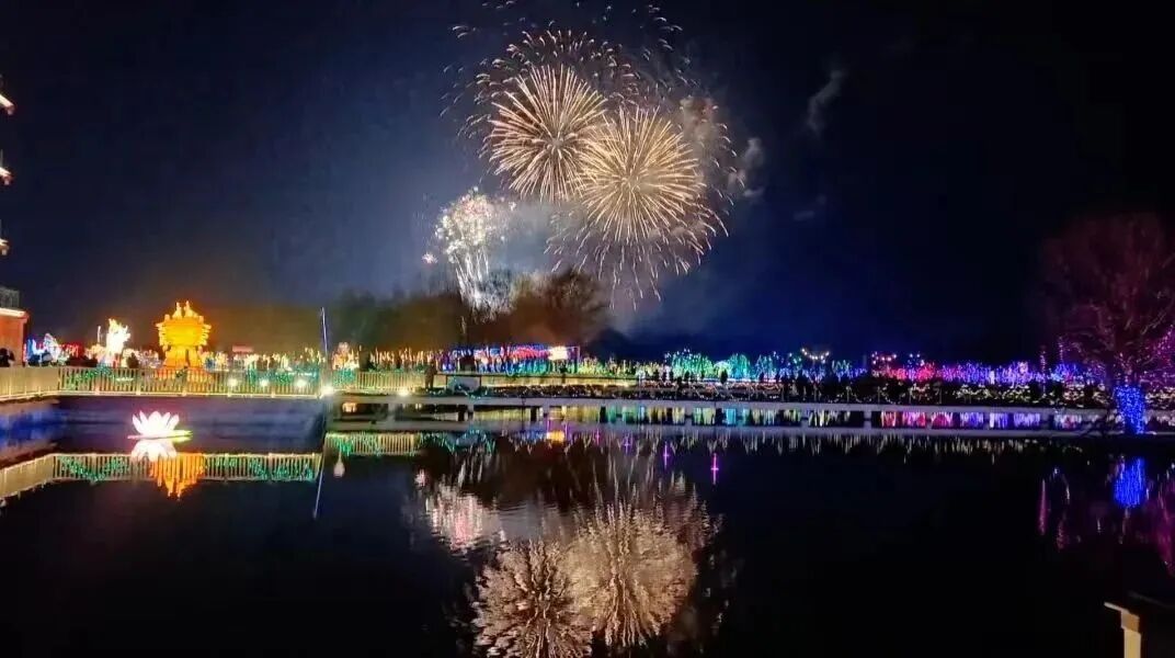 本次灯展线面结合、空间拉大,以红荷湿地景区为中心,辐射延伸到旅游度假区各片区;主题鲜明、相映生辉,不仅再现传统年味,同时采取艺术手法生动诠释了现代文化,使得非遗文化、传统艺术与现代文化在过年的独特喜庆气氛中各展魅力、相互辉映;围绕灯展、亮点纷呈,灯光秀、烟花秀、表演秀或交叉展示、或顺次展开,以“文化+节庆+科技+娱乐”的形式展现了节日气氛下的红荷湿地新场景:除了各具特色、让人眼花缭乱的各式花灯,让人惊艳的大型烟花秀、打铁花,还有祥狮献瑞、巨型木偶巡游、变脸、二虎摔跤、不倒翁表演、墨子密盒脱口秀等多场表演活动,让在场的每一位游客沉浸其中,趣味性和体验感拉满。