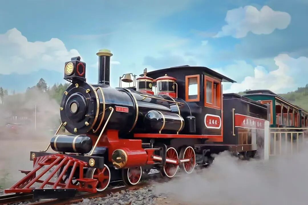 旅游观光小火车名为快乐幸福号,采用复古式蒸汽火车,转动的仪表、喷涌而出的袅袅蒸汽,伴随着年代感十足的呜呜汽笛声,游客们不仅可以体验一把隆隆的铁路旅行,还能尽情欣赏沿途景致。