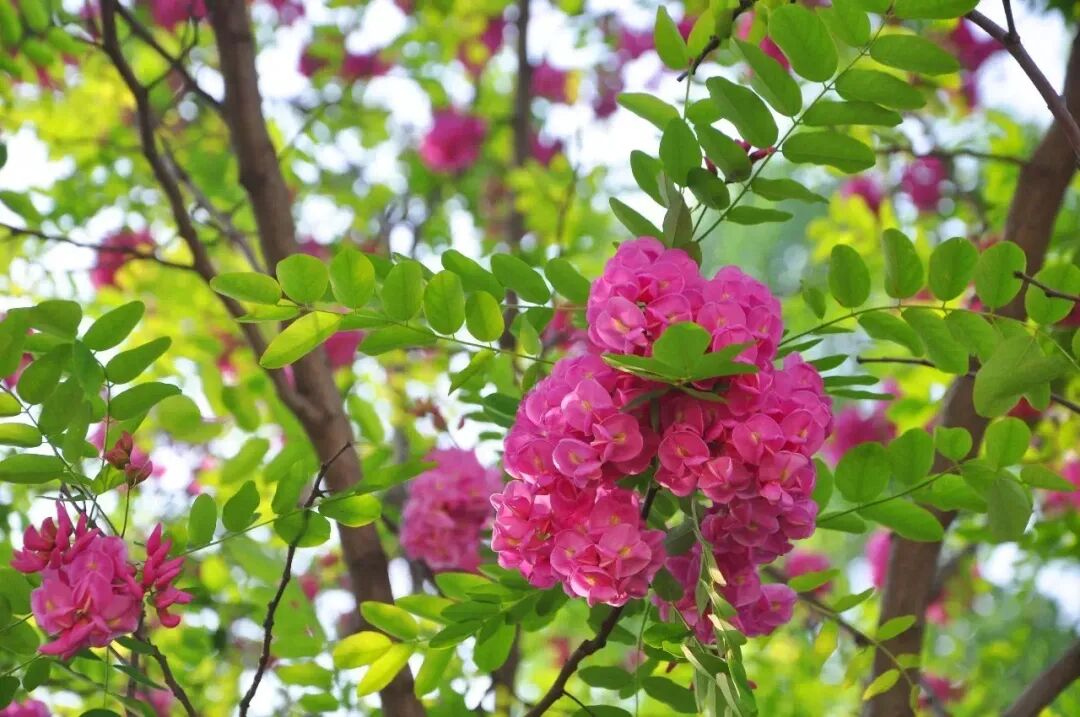 穿越过繁忙的停车场与电车站,忽地被一缕清新甜蜜的香气所牵引——槐花已悄然绽放!那一串串黄白相间、粉嫩可人的花穗,宛如风中的铃铛,轻轻摇曳在枝头,散发着迷人的芬芳,让人心旷神怡,沉醉不已。