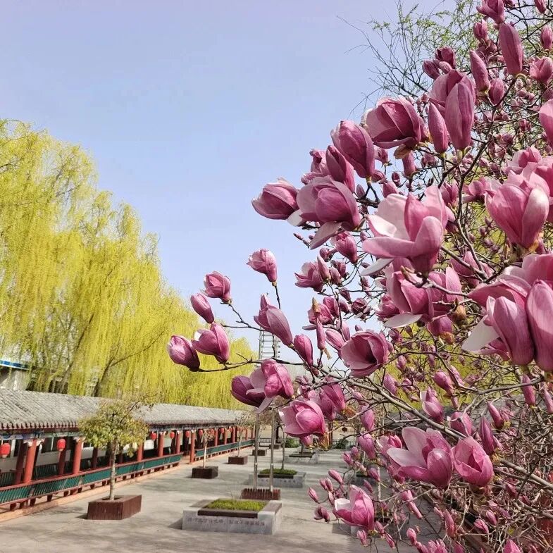 春日的序章,从一树温婉的玉兰开始。红荷广场的玉兰率先苏醒,枝头缀满素白与浅粉,花瓣舒展如仙子裙摆,在晨光中翩然起舞。轻风拂过,暗香浮动,树下漫步仿佛误入古典水墨画。