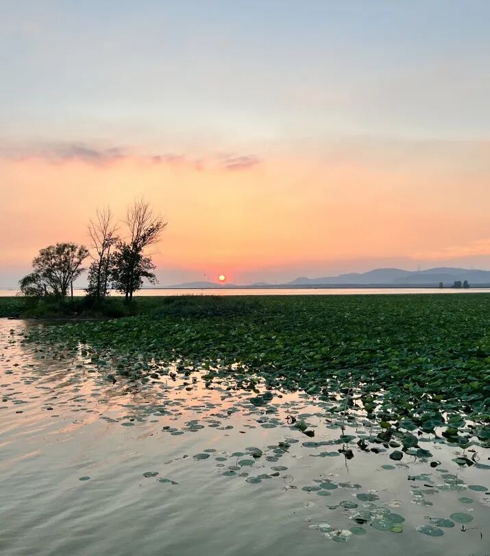 谁说生活只能内卷?红荷湿地教你浪漫天花板新玩法!这届夕阳超会抢镜,我们直接给它开了VIP通道限定航线,让你拍剪影自带电影滤镜,朋友圈C位非你莫属!