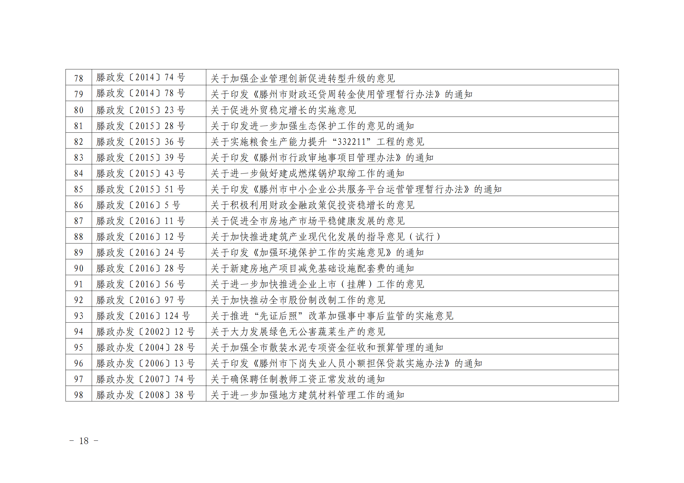 滕政发〔2018〕9号:滕州市人民政府关于公布市政府规范性文件清理结果的决定.docx