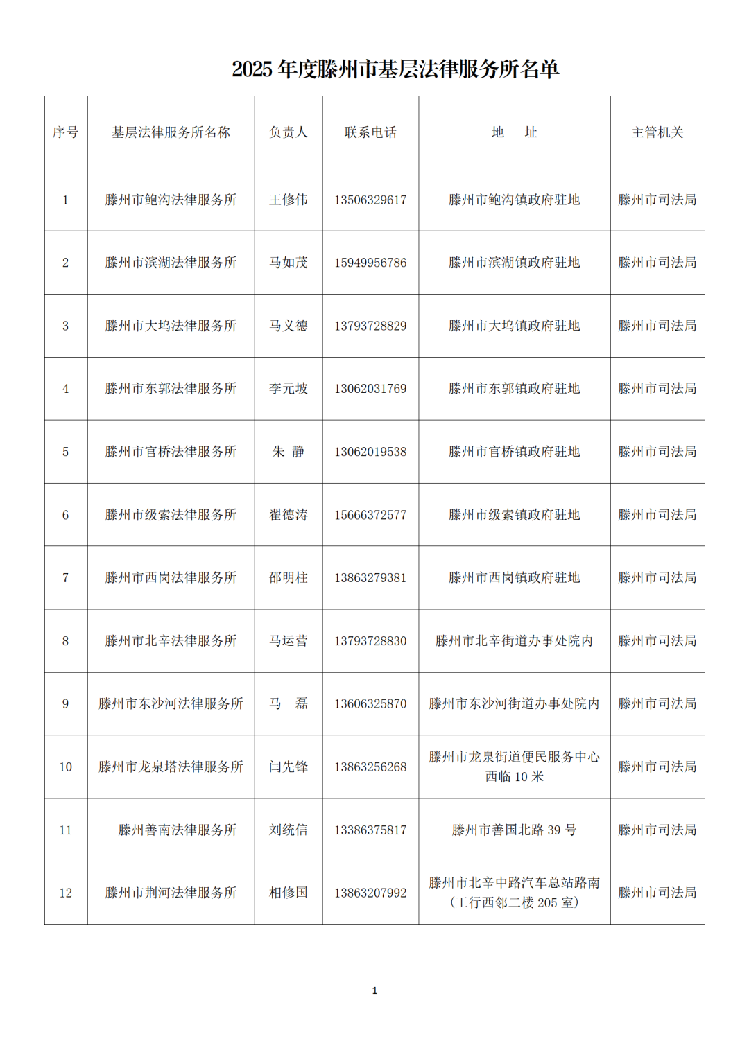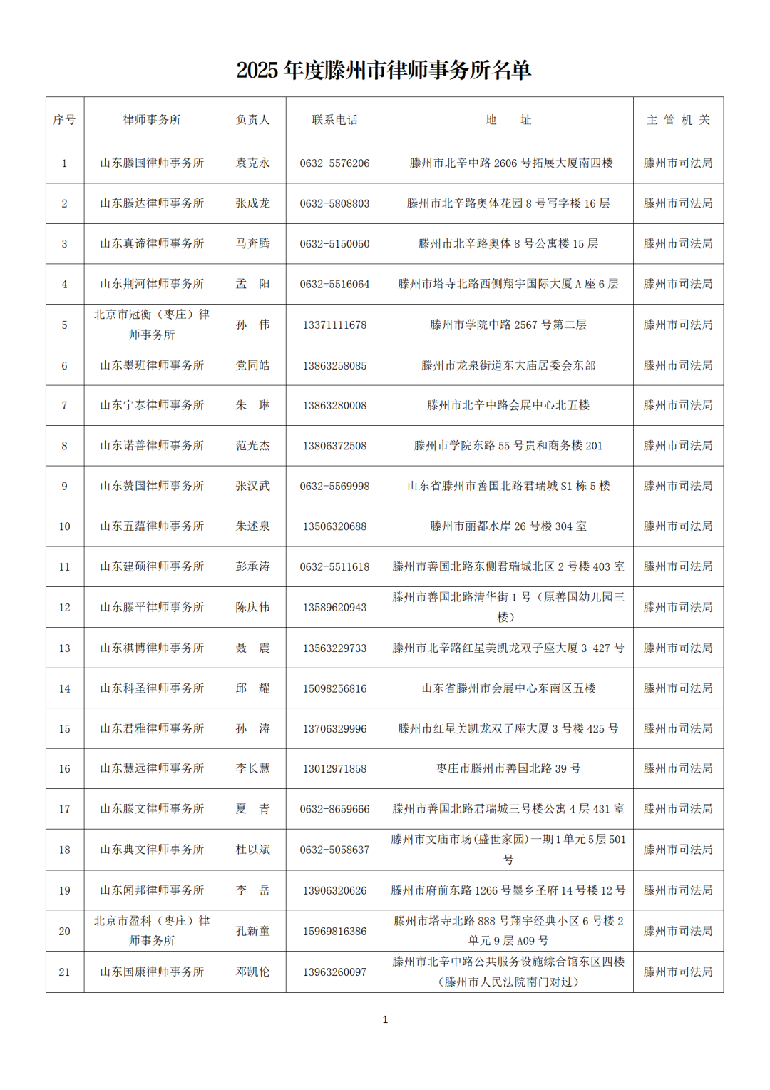 - 标 题:2025年度滕州市律师事务所和基层法律服务所信息公示