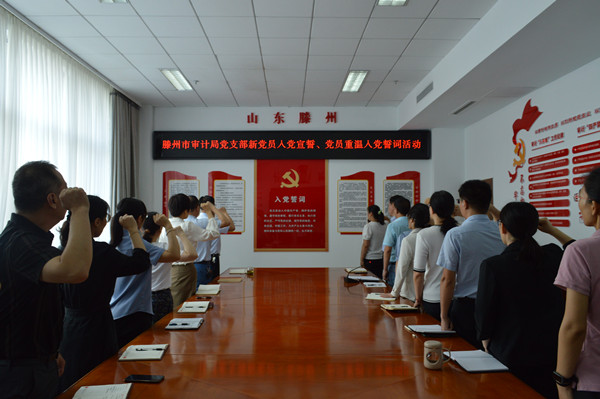 为庆祝中国共产党101周年华诞,以更加昂扬的斗志、更加坚定的信心、更加扎实的作风迎接党的二十大胜利召开。7月1日,滕州市审计局组织机关党员开展了“新党员入党宣誓、老党员重温入党誓词”活动。局机关全体党员参加此次活动。
