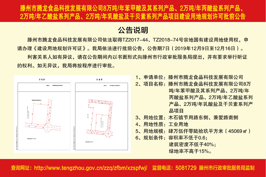 滕州市腾龙食品科技发展有限公司8万吨_年苯甲酸及其系列产品、2万吨_年丙酸盐系列产品、2万吨_年乙酸