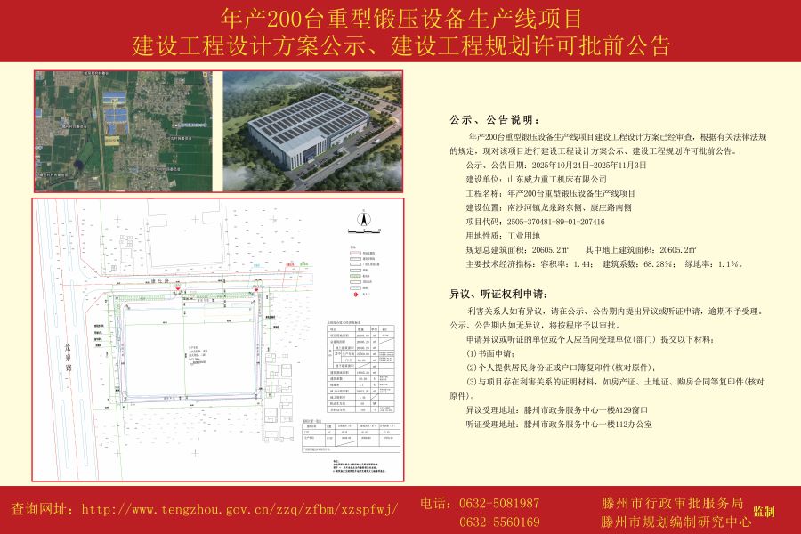年产200台重型锻压设备生产线项目建设工程设计方案公示、建设工程规划许可批前公告