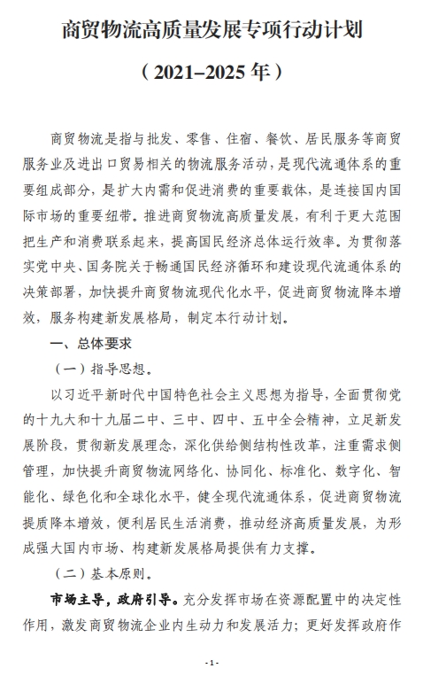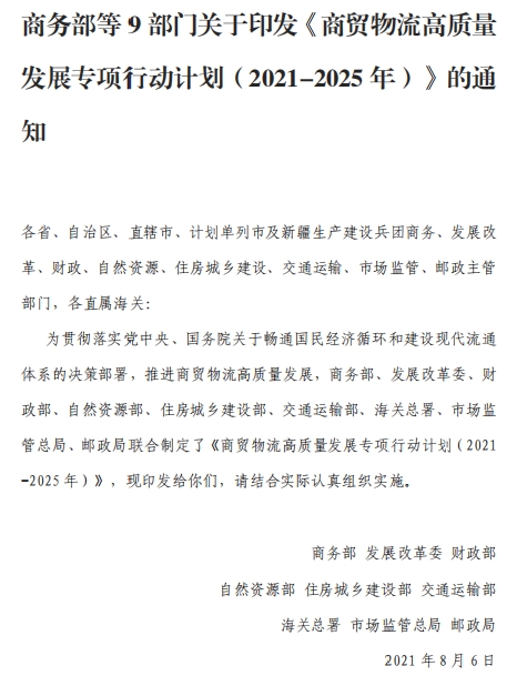 附件:商务部等9部门关于印发《商贸物流高质量发展专项行动计划(2021-2025年)》的通知