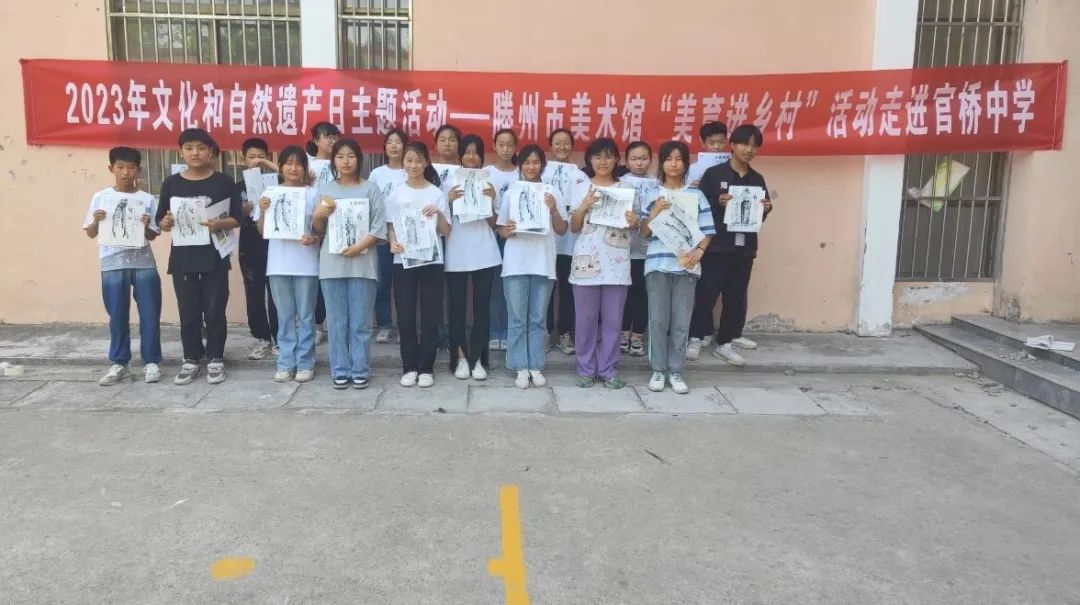 6月9日下午,2023年文化和自然遗产日主题活动——滕州市美术馆“美育进乡村”活动走进官桥中学,为在校师生带去了以“馆藏爱国、爱乡题材书画精品”为主题的美育展览。此次美育展览,满足了人民群众对于文化生活的美好需求,倡导了以文化人、以美育人的美德健康生活方式,让传统文化和民族精神根植到最基层村民心中。