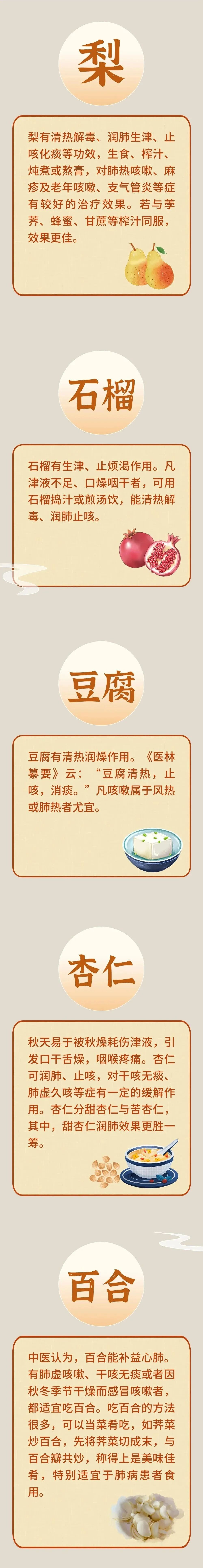 秋季干燥,气候转凉,很多人容易患上秋季咳嗽。咳嗽作为秋季最常见的病症,不仅会伤肺,不及时治疗,还容易引起严重的后果。除了用药外,怎么通过饮食调理来缓解秋季咳嗽呢?这10类食物,大家不妨吃起来!