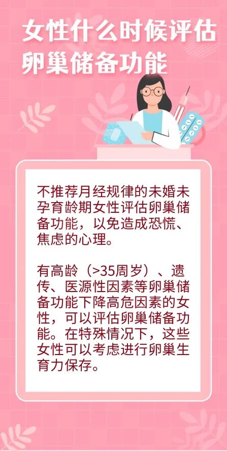 通过抽血化验并结合患者的年龄因素,医生可以了解患者的卵巢储备功能情况。当患者的检测结果与以下任何一项相符时,就提示卵巢储备功能下降:AMH<1.1ng/ml,两侧卵巢里的卵泡数量加起来不到5枚,连续两次月经周期抽血检查FSH≥10IU/L。此外,35岁以上的女性如果积极尝试备孕超过6个月仍未成功妊娠,就要尽早进行卵巢储备功能评估检测。