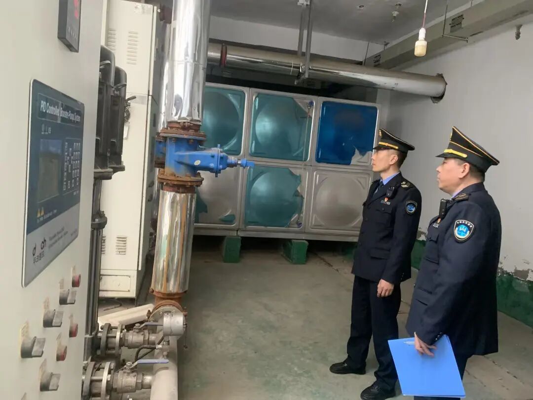 此次检查严格按照《生活饮用水卫生监督管理办法》《二次供水设施卫生规范》等要求,全面排查供水环节中的卫生安全隐患。检查组采取实地查看、调查询问、查阅资料相结合的方式,重点核查供水单位的卫生许可情况与管理制度建立、水箱清洗消毒与维护、消毒设施正常运行、供管水人员健康体检与培训、涉水产品索证索票、水质检测报告、泵房卫生防护与安全管理等关键环节,确保不留死角、不漏隐患。
