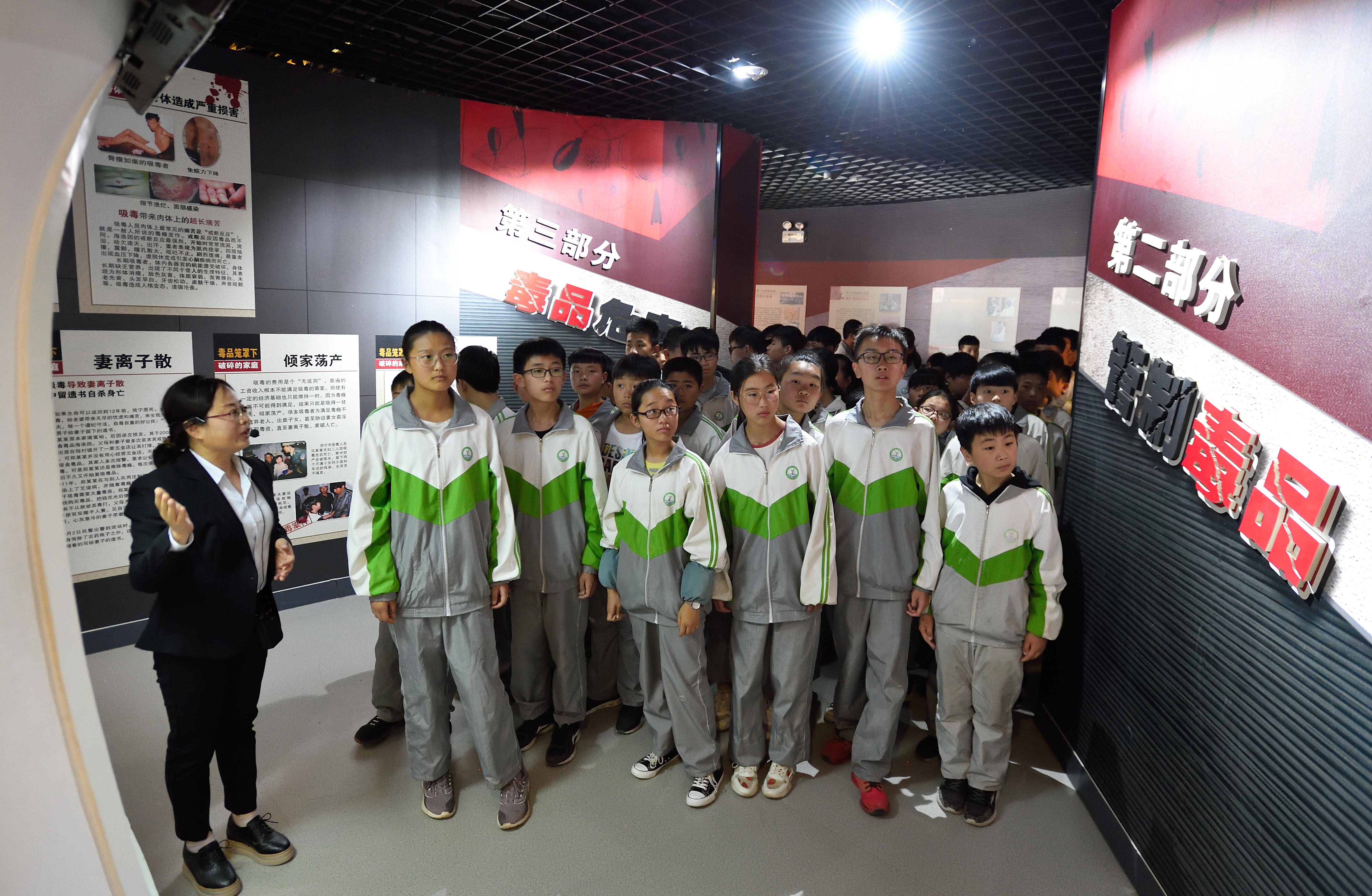 在滕州市禁毒教育基地,通过讲解员大量详细生动的实物、图文介绍,参观人员直观地感受到了毒品的危害。在展览厅内,吸毒面貌模拟机器引起了参观人员的注意,走进拱形区域面对摄像头,屏幕上便出现了吸毒3年、5年和8年后的样子,屏幕内容让参观人员震撼,纷纷感叹“珍爱生命,远离毒品”。在荆河派出所智能警务室内,智能机器人正在和参观人员面对面交流。智能机器人可以与语音指导市民办理业务。