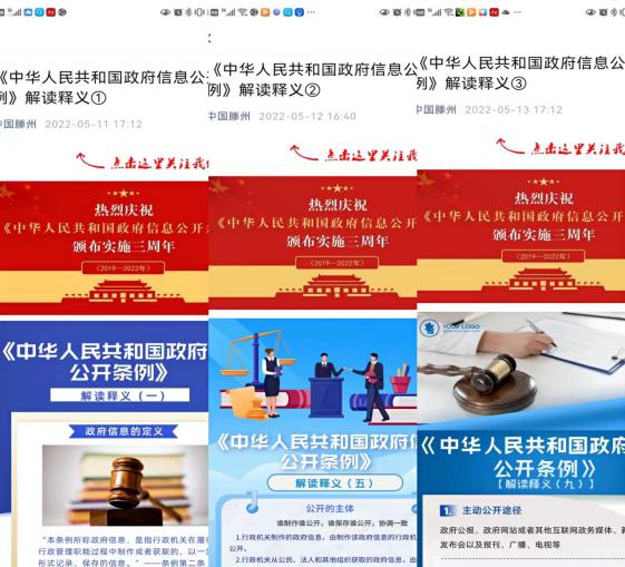 一、精心谋划广宣传。滕州市组织专门力量对新修订《条例》进行剖析,精心制作解读释义图片十四张。通过法律顾问审核后,在政府官网、微信公众号等官媒进行连载宣传。发动各部门各镇街在各宣传媒体进行社会面宣传,让社会公众更加了解《条例》的内容,进一步扩大《条例》的影响力,为打造透明政府营造良好的社会环境。